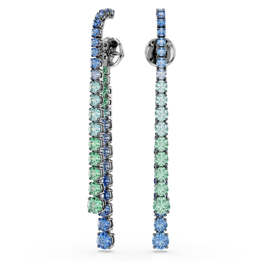 הגבירו את העוצמה עם עגילים עזים אלה מבית סברובסקי. כל פריט מצופה רותניום כולל שני גדילי קריסטלים, המוצגים בגרדיאנט דרמטי של קריסטלים שעוברים מטורקיז לכחול. ענדו אותם עם שרשרת Matrix Tennis התואמת כדי ליצור סט משלכם שיסובב את הראש.