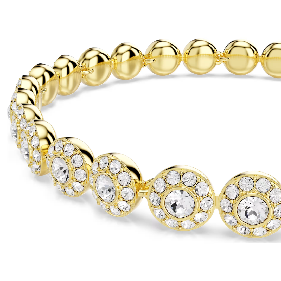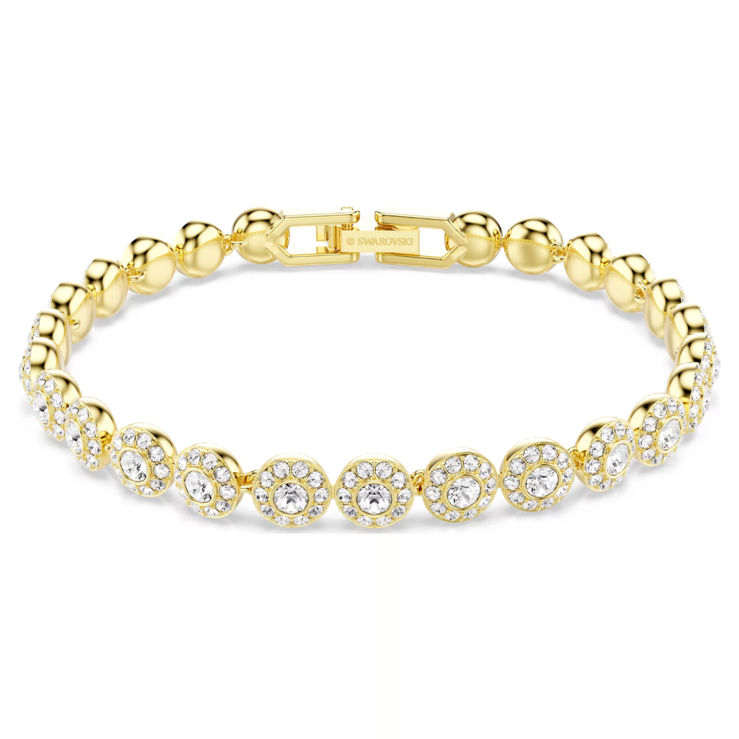 תחכום טהור ועל-זמני. צמיד מצופה זהב זה כולל שורה של גבישים עגולים חתוכים, כל אחד ממוסגר בקריסטל נוצץ. הוא משתלב בצורה מושלמת עם פריטים אחרים ממשפחת Una Angelic.
