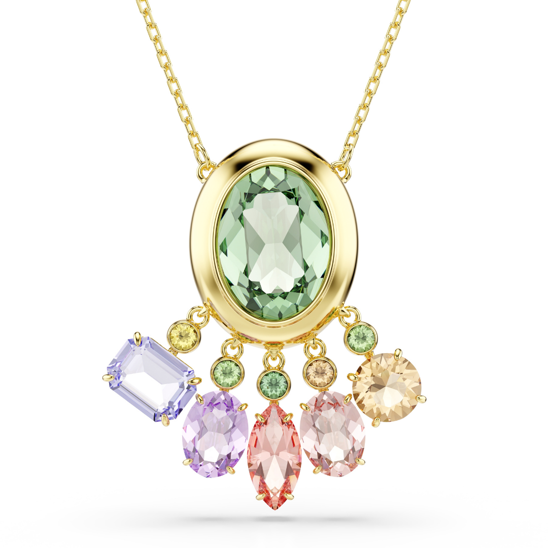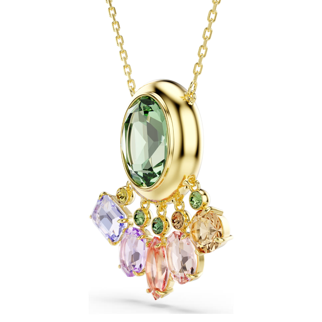 תליון Gema זה הוא דוגמה בולטת לפלטת הצבעים השמחה של סברובסקי. הקריסטל הסגלגל הירוק במרכז מוצג במסגרת מצופה זהב וכולל מגוון חיתוכי קריסטלים עזים התלויים מתחת, כולם מיוצרים במגוון בהיר של צורות וגוונים שונים. ענדו אותו בכל פעם שהיום שלכם זקוק לאנרגיה משדרגת מצב רוח.