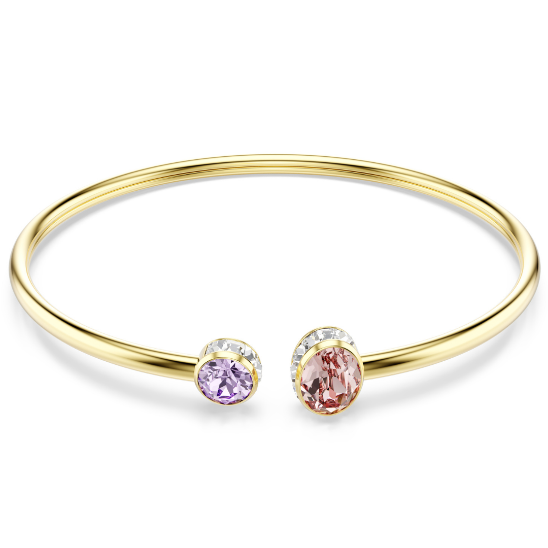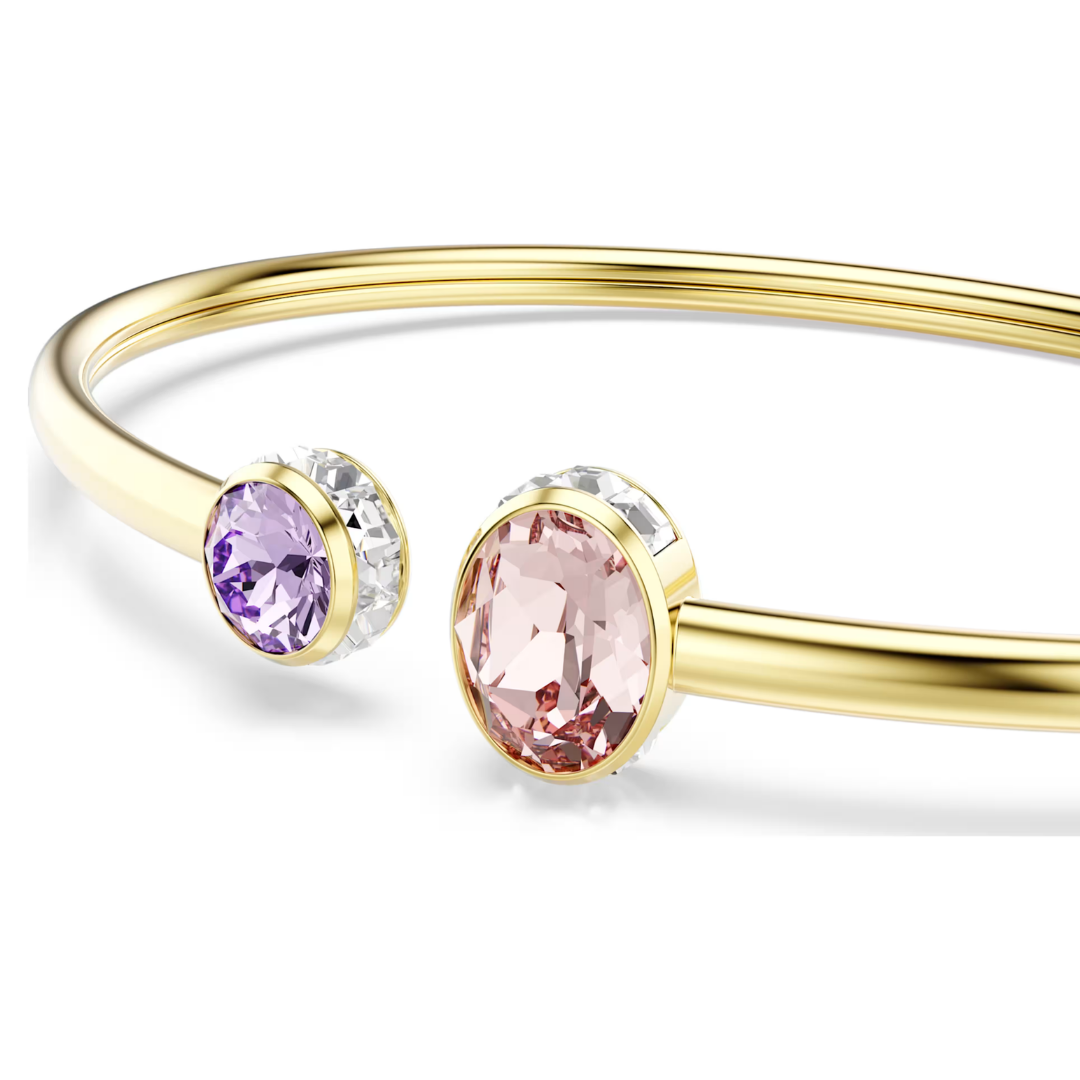 צמיד Chroma זה, בעל צללית פשוטה עם צבעים עדינים, מוסיף שכבה של תחכום רך לכל מראה. העיצוב בגוון זהב מעוצב לגמישות וכולל גבישים ורודים וסגולים בקצוות, והוא מחליק בקלות על פרק כף היד לזוהר לאורך כל היום.
